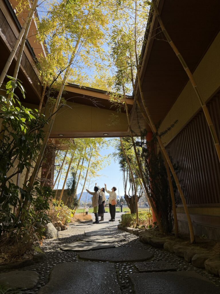 場所は宇佐市にある「魚処 丸萬」。情報通のMiyuが見つけ、Michilと私は、着いた時から「メッチャいい」を連発していました。暖かな春の陽だまりに触れながら懐石料理を頂きます。竹に囲まれた別荘風料亭。年頃の娘(教え子)のいるMichiに、Miyuが「両家の顔合わせに使えるね」と提案していました。